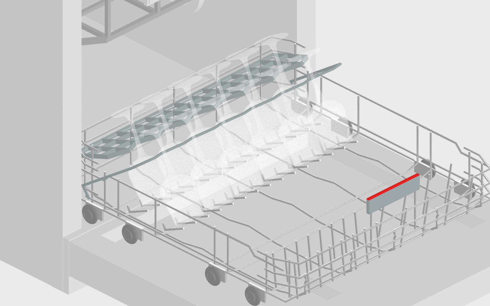 do każdego zakamarka komory, nie pomijając żadnego naczynia. Dwa górne ramiona zraszające w połączeniu