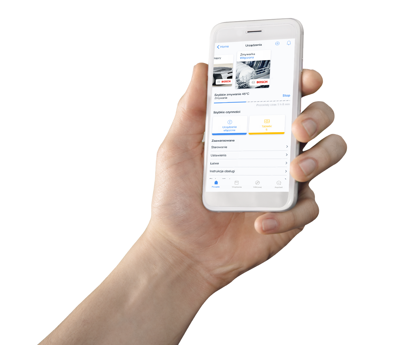 Czasem można mieć wątpliwości przy określeniu wymagań naczyń w aktualnym załadunku. W takich sytuacjach można liczyć na prawdziwego eksperta od zmywania – aplikację Home Connect. Wystarczy sięgnąć po smartfon lub tablet i zdać się na funkcję