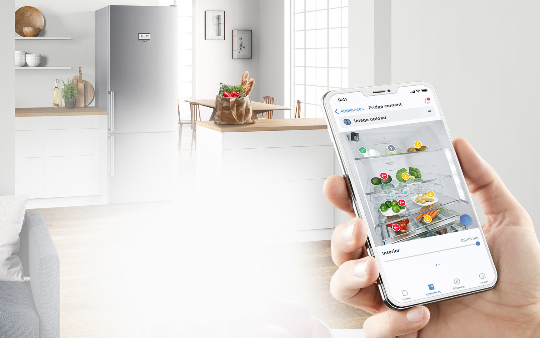 Obecnie aplikacja Home Connect rozpoznaje do 60 rodzajów produktów (owoce i warzywa) w komorze głównej. A dla rozpoznanych obiektów dostarcza zalecenia w zakresie ich przechowywania, tj. „przechowywane prawidłowo”, „przechowuj w innym przedziale” lub „przechowuj poza lodówką”.
