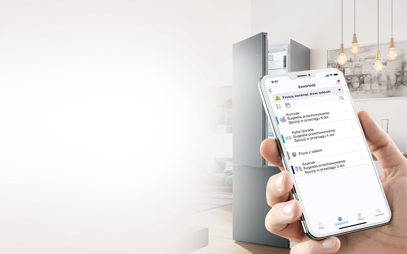 W aplikacji Home Connect można stworzyć listę zapasów, aby uniknąć marnowania żywności, i otrzymywać przypomnienie, kiedy zbliża się data przydatności produktu do spożycia. Rozpoznane owoce, warzywa i inne produkty można dodać do listy zapasów jednym kliknięciem. Konieczne jest ręczne wprowadzenie daty przydatności do spożycia. Można również zapisać miejsce przechowywania żywności,